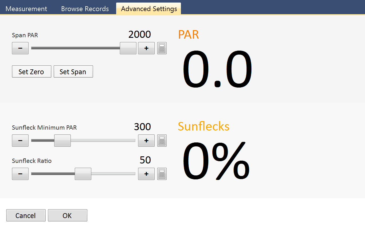 The 24 PAR sensors located along the arm of the CI-110 are calibrated at the factory. Typically, the PAR sensors do not require re-calibration. There is a warning before entering the PAR sensor calibration that this should only be performed by the manufacturer. The calibration values found at the factory for the CI-110 can be found on in the CI-110 Product Test Check Sheet at the end of the CI-110 User Manual.
